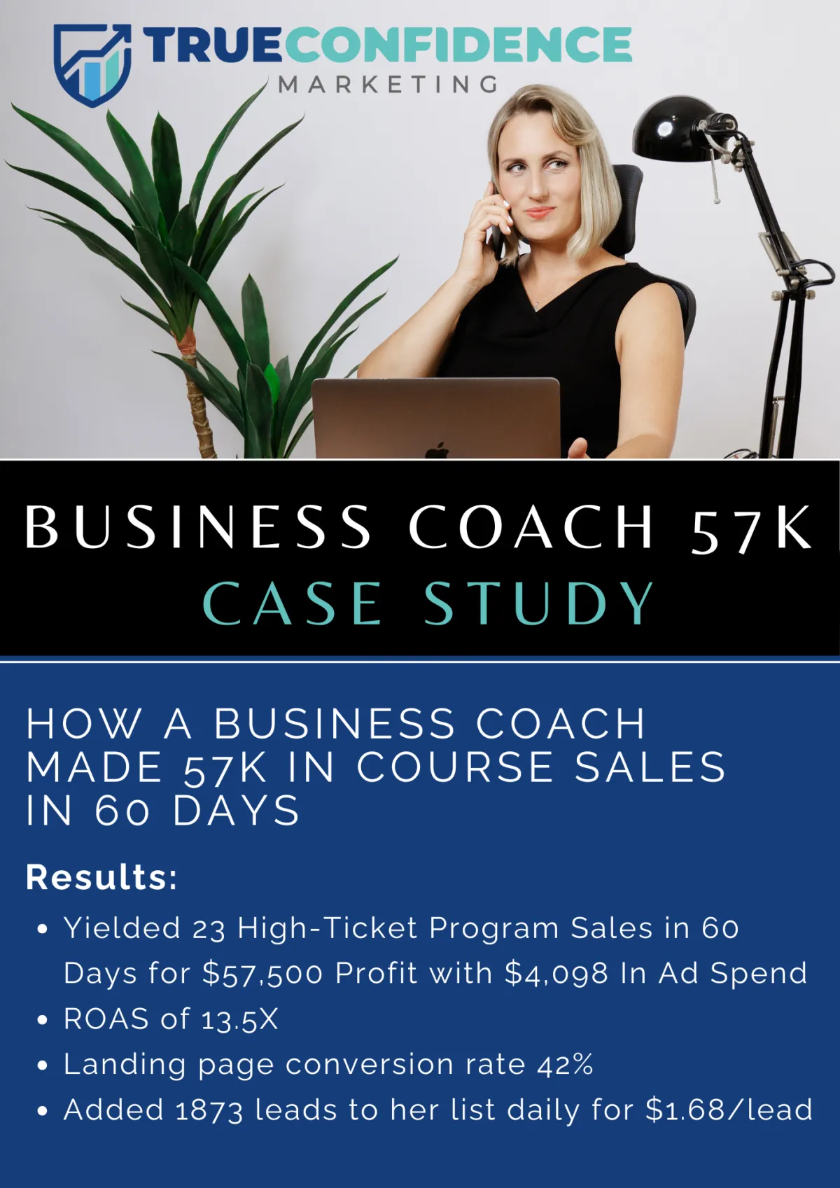 This year, we hit it out of the ballpark with a best-selling author, businesswoman and business mentor, getting her 23 high-ticket sales, making 57K in 60 days.