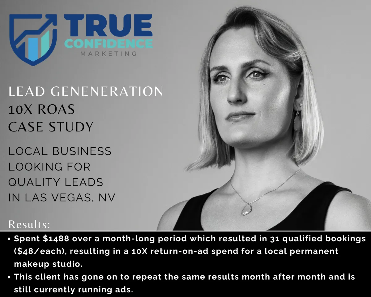 This year, our team is successfully bringing in for our client in the permanent makeup industry quality leads like clockwork, earning their studio a 10X ROAS in 30 days.